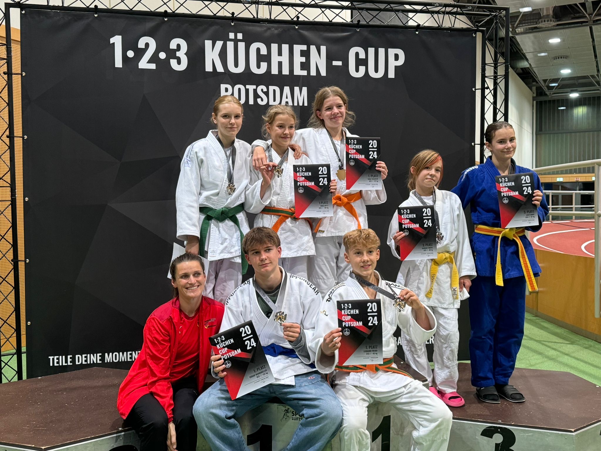 Beim 8. BMW-Cup in Leipzig (zuvor AT-CUP) am 28./29.09.2024 gewinnt die Sportschule Frankfurt (Oder) die Mannschaftswertung vor Bremerhaven und Nürnberg. Bei insgesamt 800 Kämpfern aus 122 teilnehmende Vereinen aus 6 Ländern ein erneutes Achtungszeichen der Eliteschüler. Damit konnten die Judoka ihr Ergebnis vom Vorjahr mit Platz 2 noch übertreffen. Und dass, obwohl in der Altersklasse U18 durch die Delegation nach Potsdam und der dezimierten Sekundarstufe 2 in Frankfurt zumeist nur jüngste und mittlere Jahrgänge zugehörig sind. In der u18 siegten Lindsay Koar und Tina Barthel. Oliver Bönisch belegte Platz 3. Für Ruslan Butko reichte es in der stark besetzten Gewichtsklasse bis 66 kg für Platz 7. Für Lindsay Koar gab es noch eine besondere Auszeichnung. Sie wurde beste Technikerin der weiblichen U18. Damit ist sie nach Milla Haase bereits die zweite mit einer Auszeichnung dieser Art in diesem Schuljahr. In der U13 ging die neue 7. Klasse an den Start. Besonders hervorzuheben ist die Leistung von Oskar Wankmüller, der alle seine Kämpfe vorzeitig für sich entscheiden konnte. Auch Leonard konnte seine Leistung von Jugend trainiert für Olympia bestätigen und gewann souverän Gold. Dank gilt hier den Heimatvereinen, die all ihr Wissen und Können an ihre Schützlinge weitergegeben haben und für ihr Vertrauen ihre Rohdiamanten in unsere Hände zu geben. Luise Rietschel und Milla Haase konnten in der U15 auch alle Kämpfe gewinnen und standen zu Recht ganz oben auf dem Podium. Nach einem Wettkampftag von 12 Stunden traten alle erschöpft die Rückreise an.